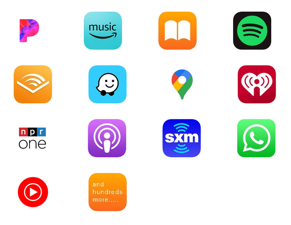 This includes popular audio and messaging apps, voice control utilities, and various other categories like gig-economy, parking, food ordering, fueling, and driving-related tasks. Popular apps like Spotify, WhatsApp, Google Maps, and Waze, among others, are readily accessible for a more connected and personalized driving experience.